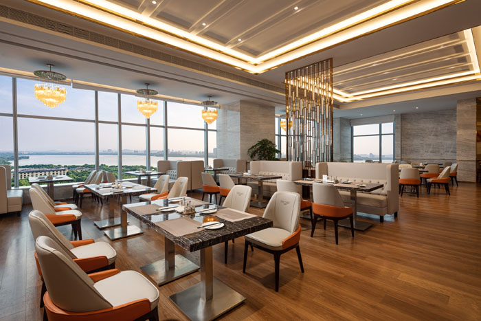 荟萃世界美食,环境优雅怡人,位于酒店五楼的国际化全日制餐厅,滨湖自助餐厅可同时容纳 320人就餐,餐饮品类结合铁板烧烤、西式糕点、多样中餐、日式料理、精致海鲜、各种水果软饮等多种菜品为一体,在此,您可体验到与美味相遇的欣喜和味蕾的最大满足。
